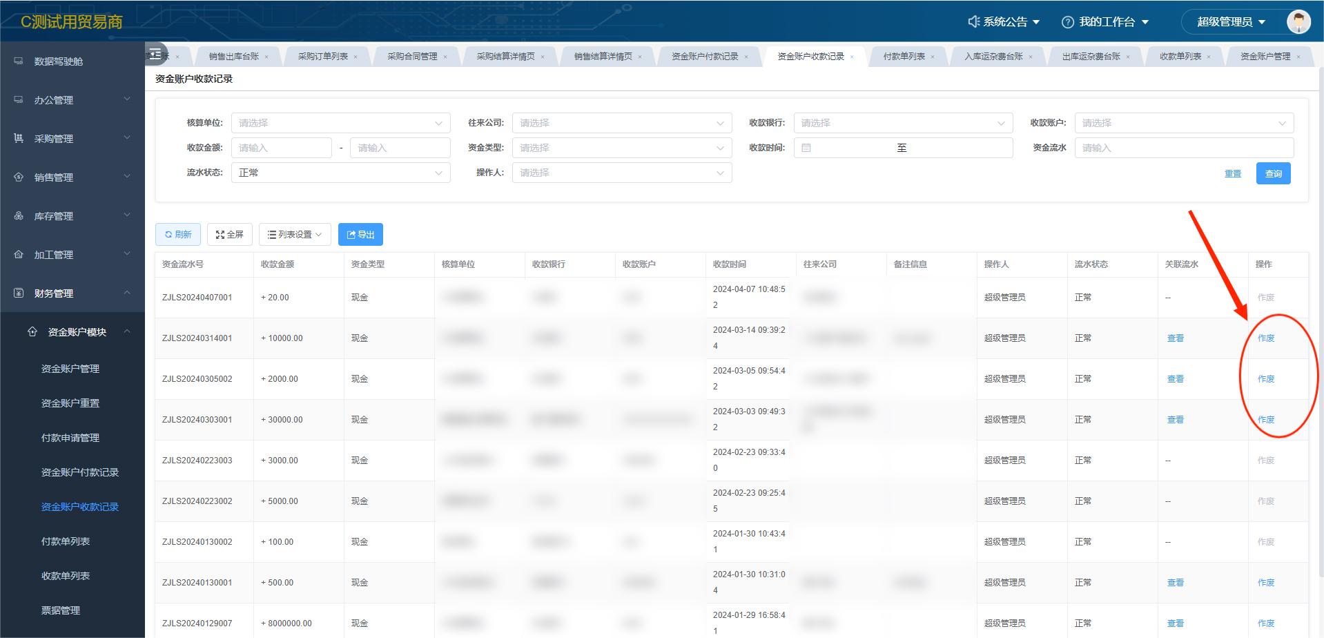 A:增设“作废”按钮,重新匹配即可。