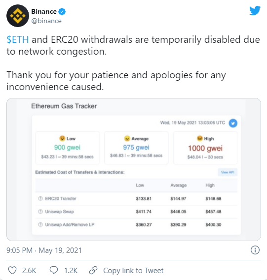 除了Coinbase,另一家受散户投资者欢迎的交易平台“币安”(Binance)今日上午也宣布,将暂停一些加密数字货币提现。